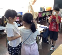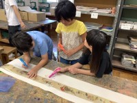 5年生は、図工の時間に「百鬼夜行絵巻」の鑑賞をしました。班ごとに絵巻を広げ、気づ...