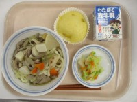 12月22日 けんちんうどん・白菜のゆず風味・冬至かぼちゃ蒸しパン・牛乳