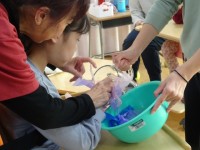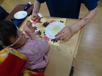 わかたけ学級の教室にもちんどんパレードが来てくれました。じっくり見て楽しい雰囲気...