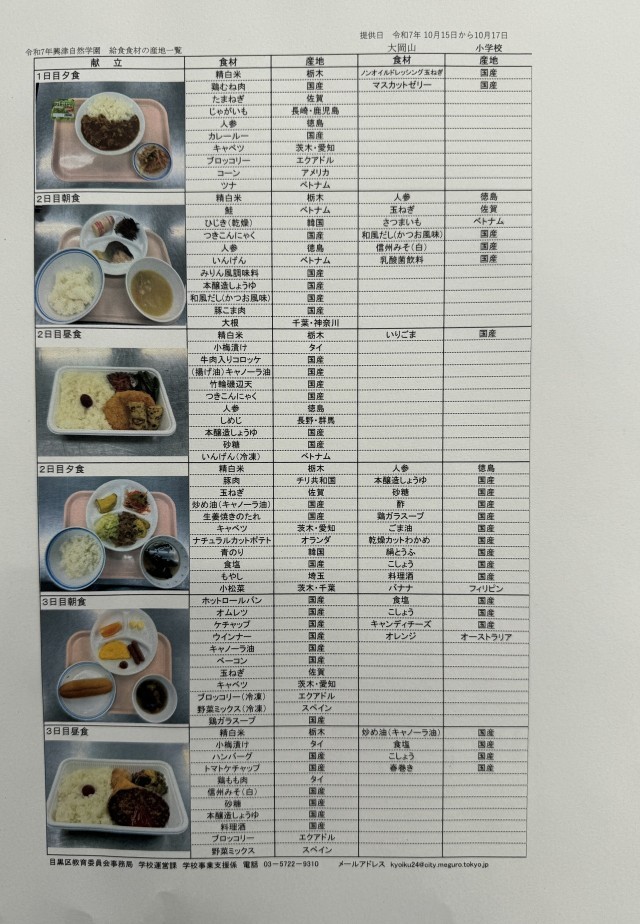 2025年度 興津自然宿泊体験教室 給食食材の産地