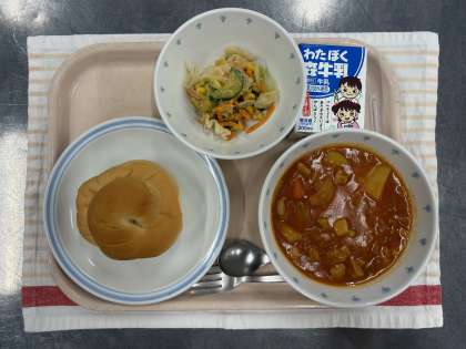 給食では、調味料を混ぜ合わせてドレッシングを作っています。
