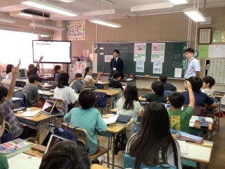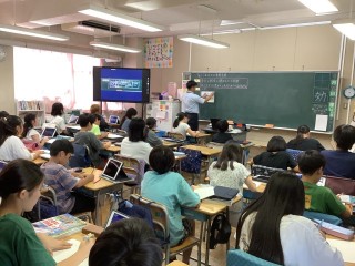 社会科「これからの食料生産」の学習では、日本の食料自給率や輸入など外国との関わり、食の安全・安心への取組に着目し、各種資料で調べてまとめることで、食の問題を解決するために自分ができることを考えました。栄養教諭にも来ていただき、地産地消への思いを知ることもできました。