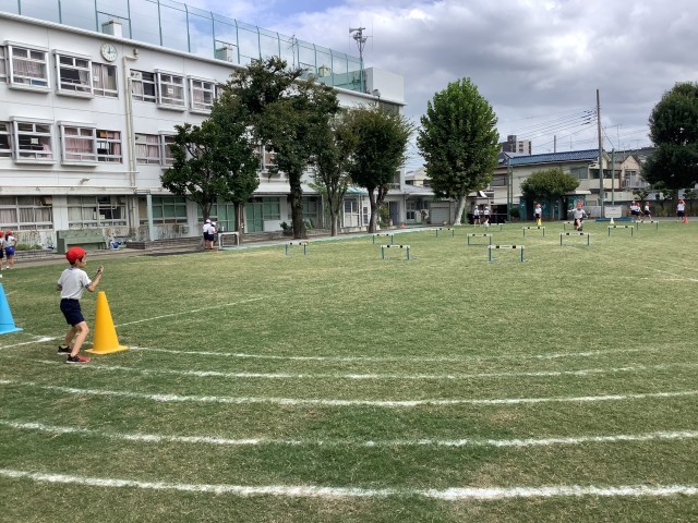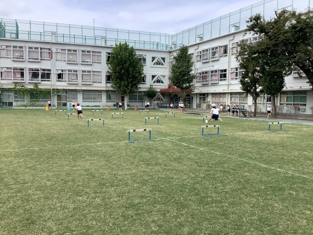 体育の授業で、ハードル走を行いました。