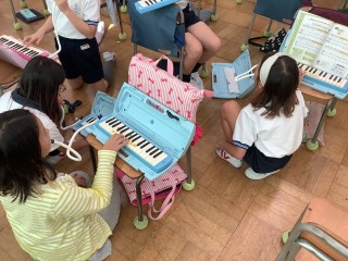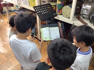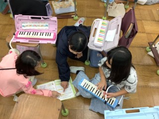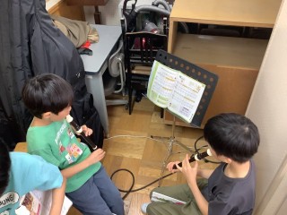 3年生はリコーダーの演奏にも慣れてきたので、今まで使ってきた鍵盤ハーモニカと一緒に「ゆかいなもっきん」という曲を合奏することにしました。
