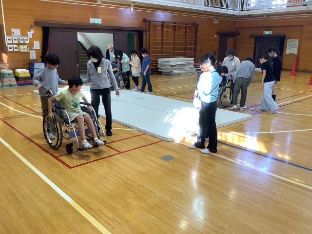 11月4日の4、5時間目を使って、車いす体験を行いました。目黒サポートセンターの方々に来ていただき、車椅子の操作の仕方を教わりました。