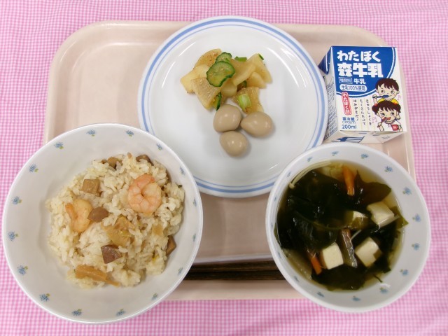 今日の給食は中華おこわ風まぜごはんです。
