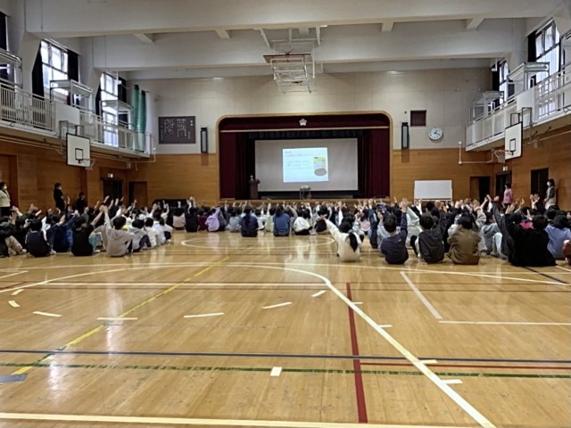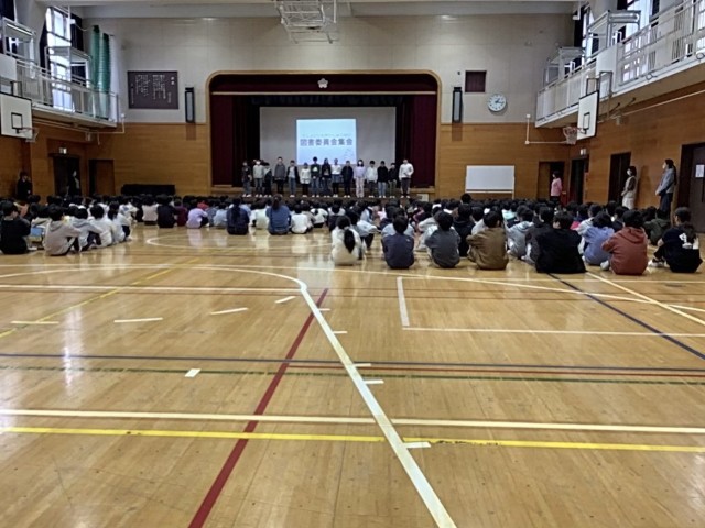 11月13日(木)お昼の時間に図書委員会集会がありました。仕事の内容や図書室の利用の仕方などを教えてくれました。おすすめの本のポスターを制作し校内に貼ったそうです。本にまつわるクイズは、みんな楽しく参加していました。最後にスタンプラリーの紹介がありました。図書室をたくさん利用してもらうためにどうしたらよいかを考えて準備してきたことが伝わってきました。