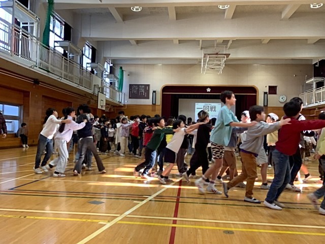 11月20日(木)お昼の時間に、第4回児童集会がありました。集会委員会が企画してくれたのは「全校じゃんけん列車」です。高学年が低学年のために、膝を曲げて小さくなって列車になっている姿が微笑ましいです。じゃんけんの勝敗が決まった瞬間の盛り上がりも最高でした。全校児童がさらに仲良しになりました。
