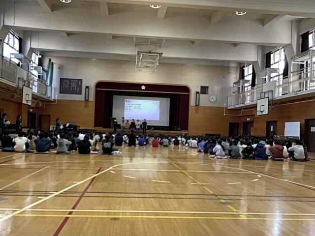 12月8日(月)の朝会で、11月19日(水)に6年生が参加した「いじめ問題を考えるめぐろ子ども会議」の報告がありました。東山中学校、東山小学校、烏森小学校の3校が集まった会議では、いじめに気付ける学校を目指して各校で取り組んでいることを発表し合いました。烏森小は6年生の代表委員会児童が、人権標語、にこにこタイム、人権の花などの取り組みをスライドにまとめて発表しました。その後、32グループに分かれて話し合い、最終的に代表者会議でスローガンを決定しました。