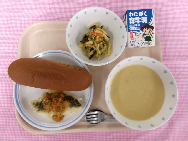 スープはコーンポタージュです。冬のスープの定番ですね。