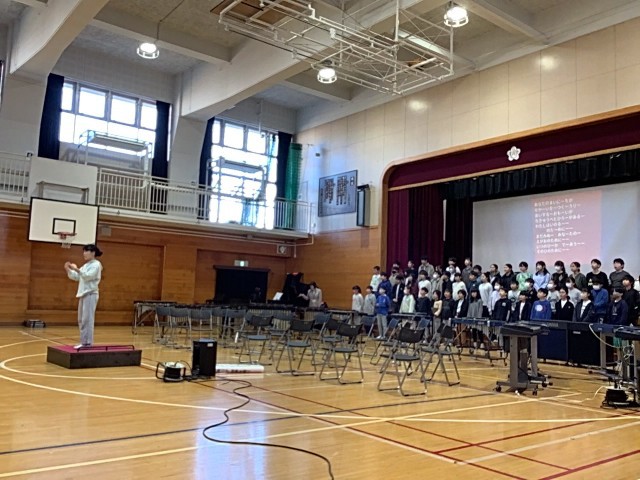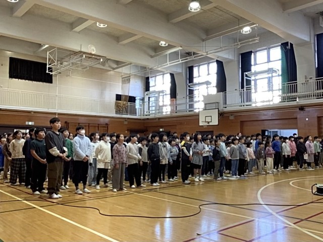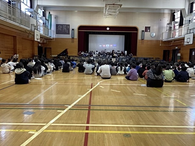 12月15日(月)音楽朝会がありました。音楽会児童鑑賞日の全校合唱曲「地球星歌」を全校児童で歌いました。最初は緊張からか固かった声も、歌っていくうちに伸びやかになりました。全校児童の声が合わさると、やっぱり歌は素敵だなと感じました。本番では、学習の成果を発揮して、みんながキラキラ輝いてほしいと思いました。