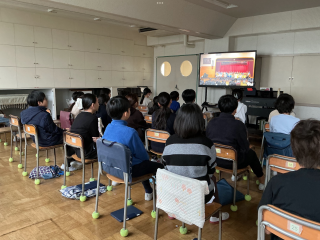 カラフルな自分達の様子を見て、満足げな様子です。本番の動画に映り込んでいた他学年の笑顔を見て、「自分たちの演奏は人を笑顔にすることができる!」と実感することができました。
