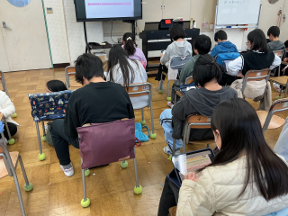 音楽会の振り返りを行いました。大人気だった5年生の演奏。