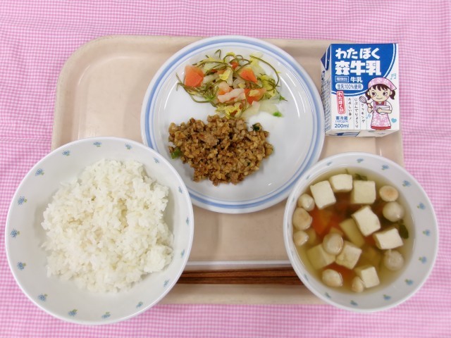 今日の給食はスタミナ納豆です。