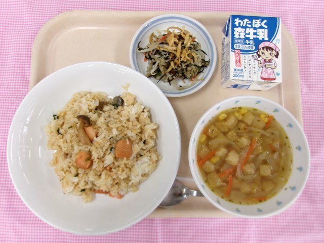 特に寒い季節に体を元気に温める働きがあることと鮭とバターの相性が良いことが特徴です。今日は、主食のごはんとして登場です。