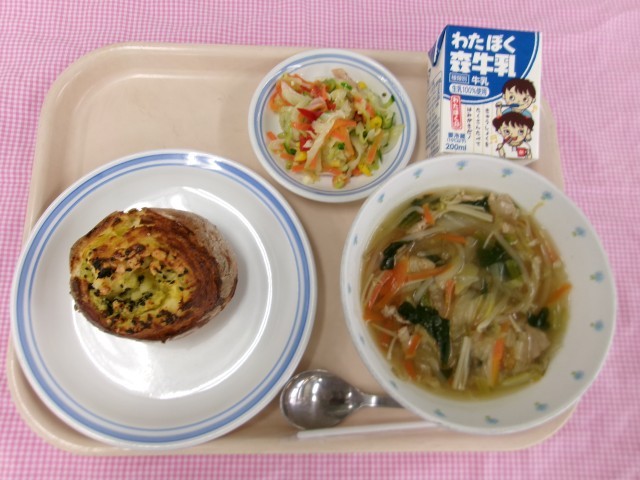 今日の「さつま芋ロールパン」は給食室の手作りパンです。