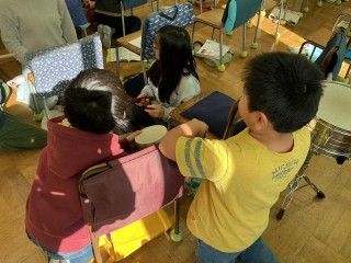 4年生では自由に楽器を組み合わせ、即興でグループごとに音楽を作る活動に挑戦しました。