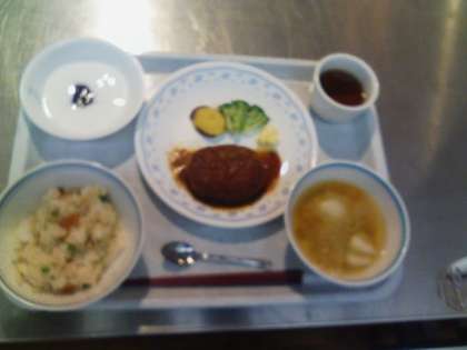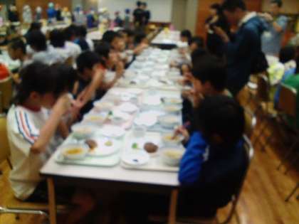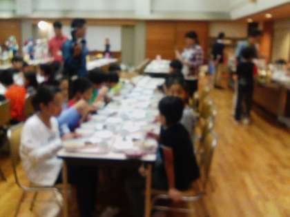 一日目の夕食です。外は雨が降り始めました。キャンプファイヤーができるかどうかこれからの天気次第です。