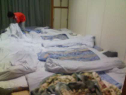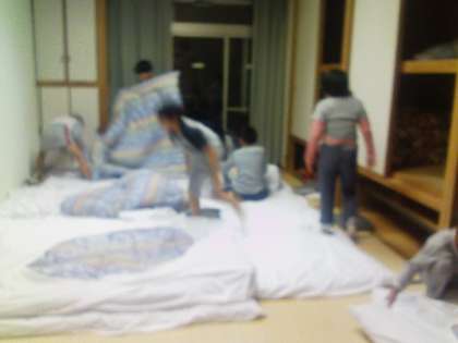 体温を計り、洗面をして、布団を敷いて就寝です。とても充実した一日でした。「おやすみなさい」