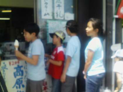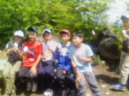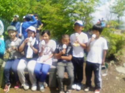 お弁当の後はお楽しみのソフトクリームです。笑顔満面で「いただきま〜す」