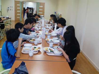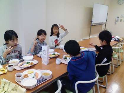 二日目の朝食です。今日は午前も午後も屋外での活動なので朝食をしっかり食べます。いただきます。