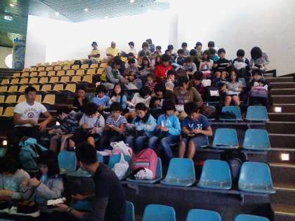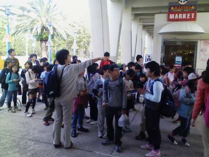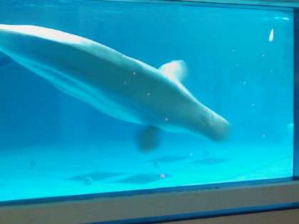 鴨川シーワールドにバスで到着しました。ベルーガ(シロイルカ)を見ながらお昼です。