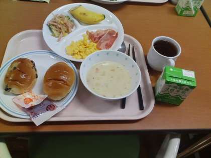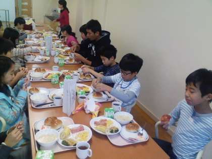 学園での最後の食事になりました。外は太陽が顔を出しています。今日も一日元気に 過ごし全員無事に東京に戻ります。