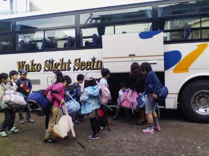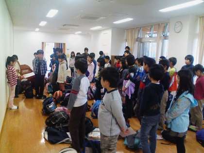 てきぱきした行動で片付けが早く終わり閉園式が五分前に始まりました。三日間お世話になった宿舎とお別れし、大きな荷物をバスのトランクに入れ、千葉市科学館に出発です。