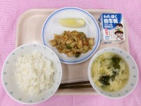 今日の給食では、一足早く、鏡開きにちなんで、もち巾着を乗せたうどんを出しました。