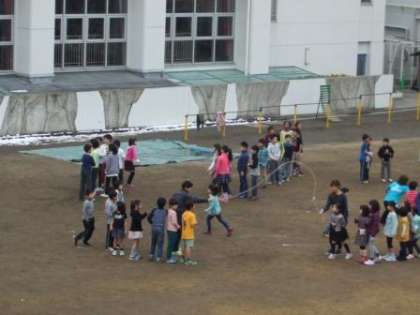 冬の体力作りの一つとして大縄の練習に取り組んできました。今日は、クラスごとに3分間で何回跳べるかを競う大縄集会です。どのクラスも心を一つにして集中して3分間取り組みました。低学年の最高は2年1組の112回、中学年の最高は4年2組の189回、高学年の最高は5年2組の291回でした。これからも楽しく体力作りをしていきましょう。