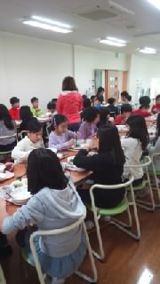 二日目の朝を迎えました。少し風が強いですが太陽が顔を出しています。昨晩は興奮をしていてなかなか寝付けない子どもがいましたが、今朝の検温では全員平熱で元気にみんな揃って朝会やラジオ体操に参加しています。今日も一日元気に過ごせるように朝食を「いただきます」