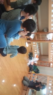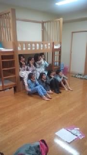 消灯前にカメラマンが部屋ごとに写真を撮っています。写真を撮り終わったら「おやすみなさい」
