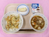 今日の給食は冬野菜のシチューです。