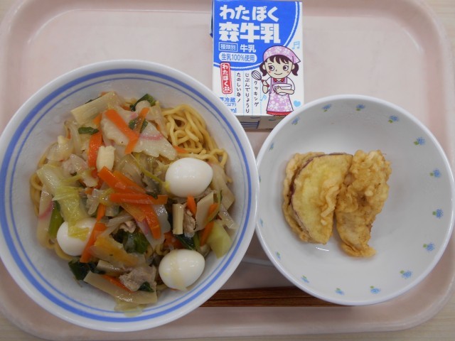 今日の給食は、長崎ちゃんぽん・長崎天ぷら・牛乳でした。