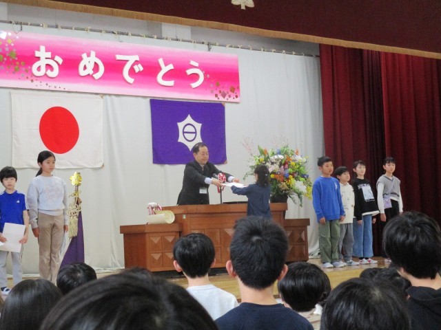 校長先生から、代表の児童に終了証が手渡されました。
