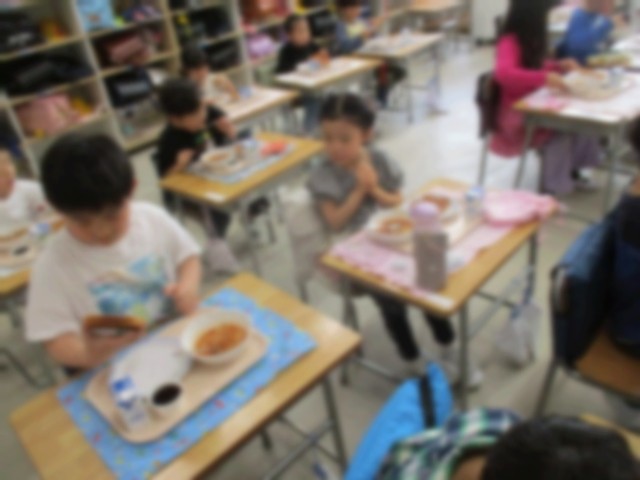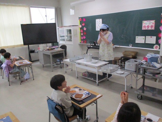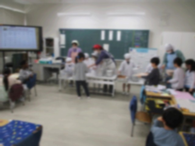 1年生の教室では、給食の時間の前から、「お腹すいたー」や「給食楽しみ」と言った声が聞こえてきました。