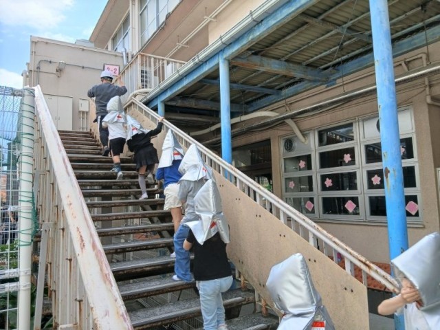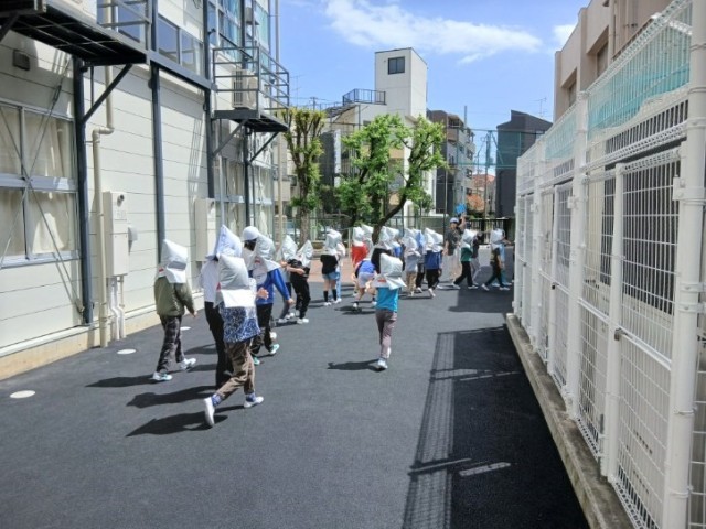 今年度初めての避難訓練を行いました。1年生は訓練の仕方を見学し、2~6年生は新しい教室からの避難経路を確認しました。