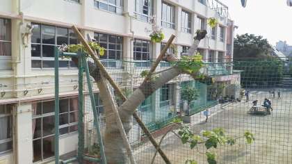 昨年度、台風で倒れた桐の木ではご心配をおかけいたしました。4月になり、新芽がどんどん大きくなり、薄紫色の花が咲きました。精一杯頑張っている桐の木に命の大切さを改めて感じさせられます。うれしいご報告です。