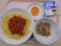 今日の給食は鮭と青大豆のピラフ、和風ポトフ、りんご、牛乳です。