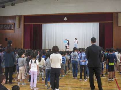 「前期は運動会の隊形移動をがんばりました。」「今よりもっと字が上手になりたいです。」「後期にもたくさんの『初めてのこと』をがんばりたいです。」などの言葉にみんなで拍手を送りました。