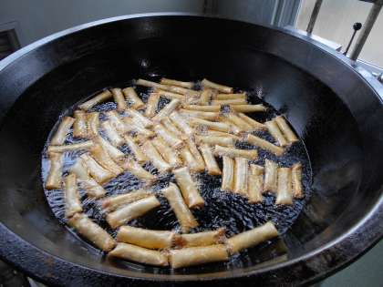 春巻きは皮がパリッとなるように低温で時間をかけて