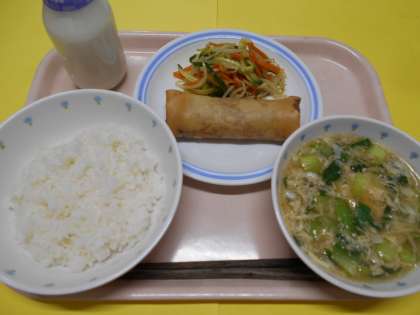 今日の献立は*ごはん*春巻き*野菜のカレー風味*