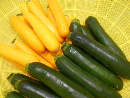 スパゲッティに夏野菜の色鮮やかなズッキーニが入りました。