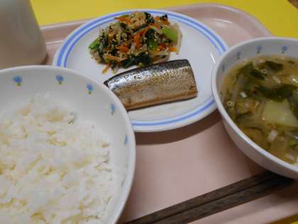 今日の献立は*ごはん*さんまの梅煮*千草和え*じゃが芋と