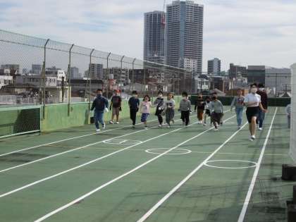 お天気もよく、校庭、屋上、体育館、教室などいろいろな所を使ってみんなで楽しく遊びました。
