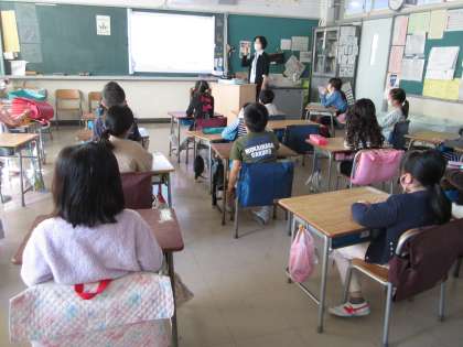 今日は、低学年と高学年で実施していただきましたが、どの学級もお話の世界に引き込まれていました。