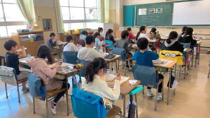 楽しみにしていた給食に、子供たちの笑顔がマスク越しからも伝わってきました。