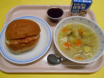 今日のスープにはABC・・・・の型をしたマカロニが入り