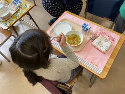 給食後は、「ABCスープのアルファベットを見つけたよ!」、「給食美味しかったー!」など、嬉しい声が聞こえました。