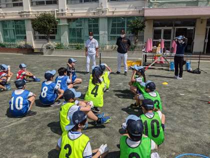 今日は4年生の出前授業。みんな楽しそうに野球の練習をしました。